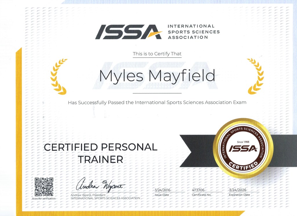 Certified Fitness Trainer: International Sports Sciences Association (ISSA)